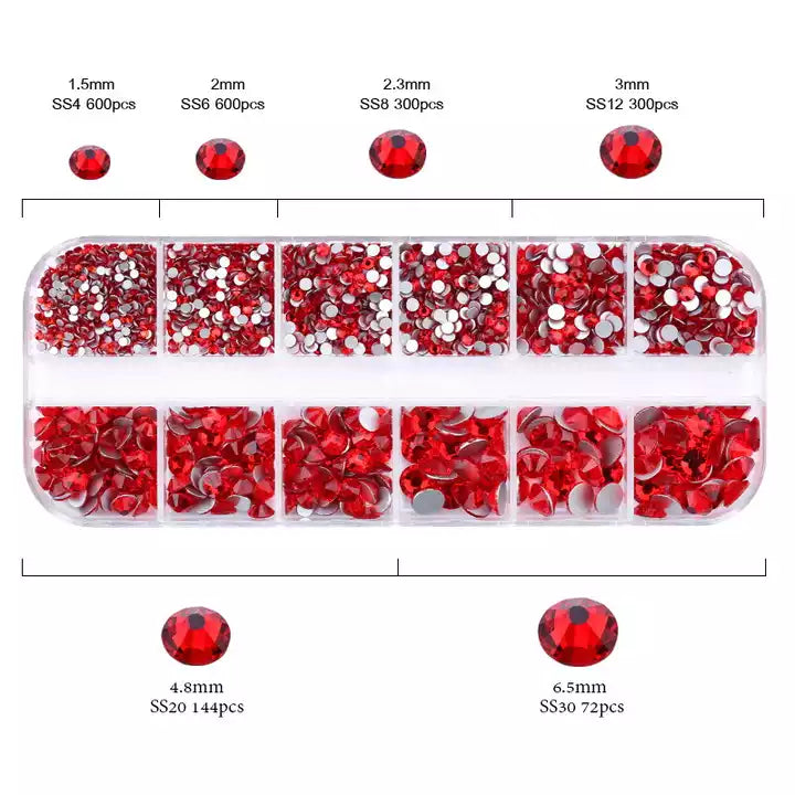• Size : Mixed with sizes ss5 (1.8mm) - 30 pcs, ss7 (2.2mm) - 20 pcs, ss9 (2.6mm) -20 pcs, ss12 (3.1mm)